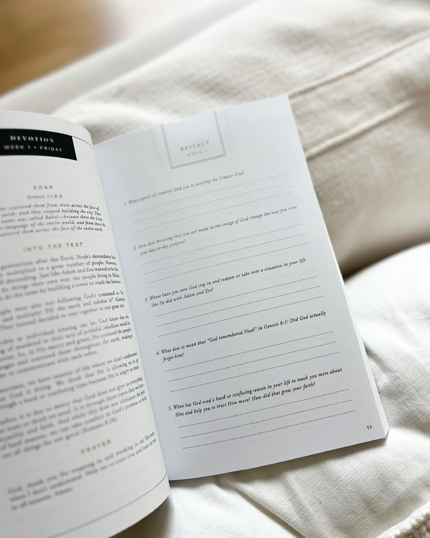 Weekly reflection questions and goal-setting prompts to help you apply God’s Word in your life