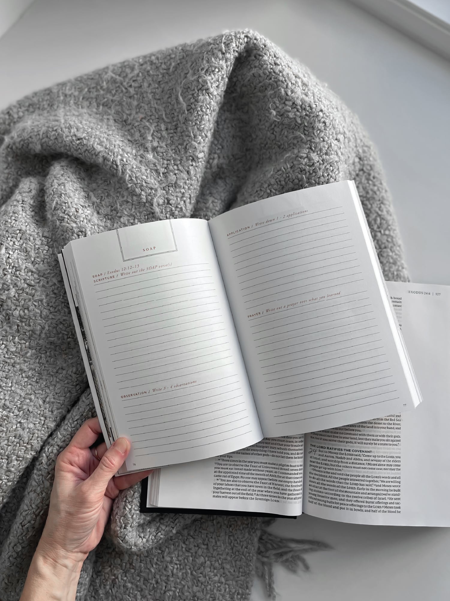 Blank journaling pages with ample space to use the SOAP Bible study method
