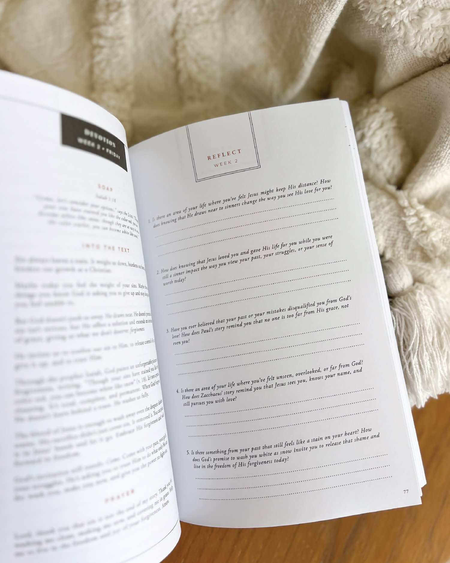 Weekly reflection questions and goal-setting prompts to help you apply God’s Word in your life